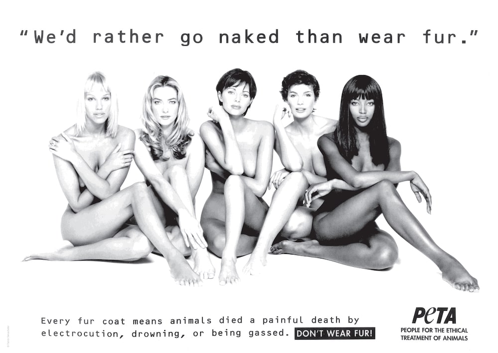 „Lieber nackt als im Pelz“ ist eine der weltweit bekanntesten PETA-Kampagnen. Ursprünglich die Idee einer Aktivistin, startete sie 1990 unter dem Titel „I’d rather go-go naked than wear fur“ mit den Go-go Girls in den USA. In Deutschland unterstützten seit 1994 zahlreiche Prominente den nackten Protest gegen Pelz, unter anderem Die Toten Hosen, Dana Schweiger und Nova Meierhenrich. Heute verwendet die Tierschutzorganisation den Claim darüber hinaus für Demo-Aktionen. PETA nutzte als erste NGO in Deutschland unter anderem Prominentenkampagnen für die Umsetzung ihrer Ziele.