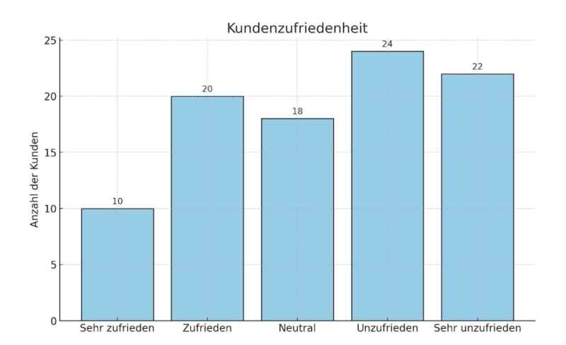 Dieses Balkendiagramm veranschaulicht die hypothetische Zufriedenheit der Eurowings-Passagiere mit dem Entschädigungsverfahren auf der Grundlage verschiedener Bewertungen und der Gesamtzufriedenheitsbewertung von Eurowings.